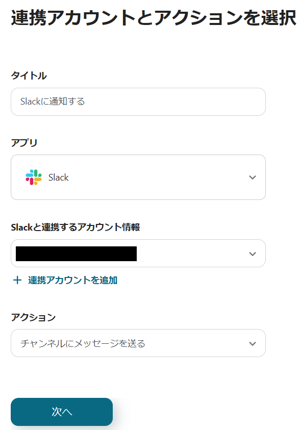 Slackに通知する設定を行うため、「Slackに通知する」をクリックします。