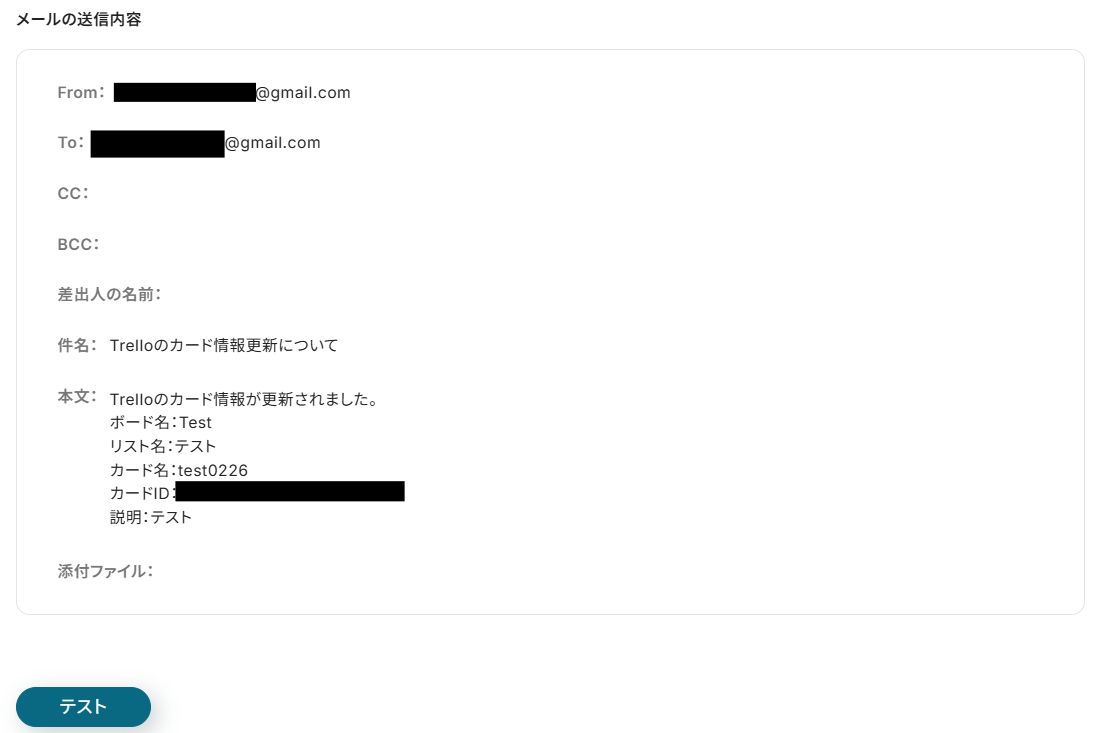 「To」にTrelloのカード更新を通知したい宛先を入力しましょう。