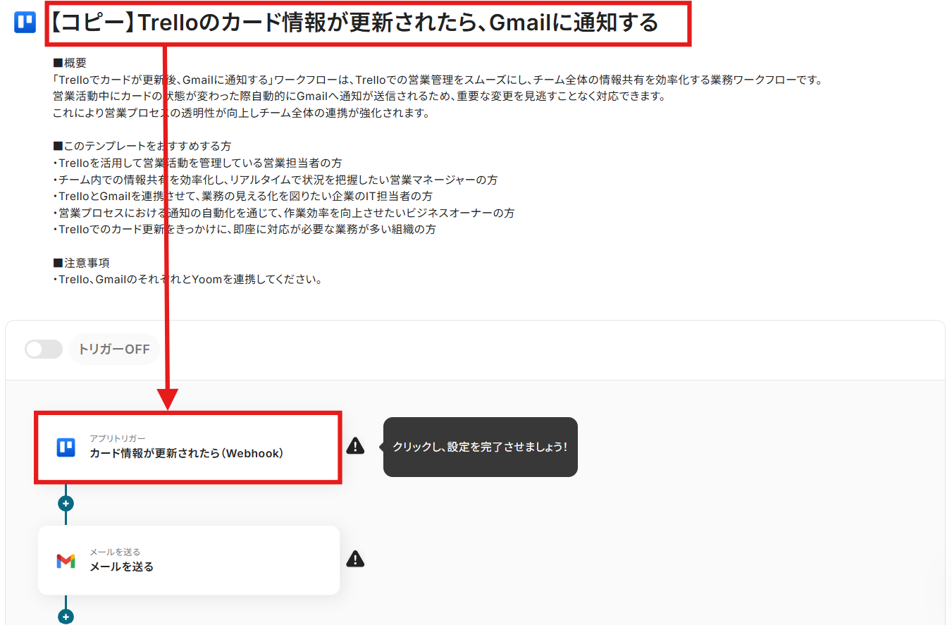 それでは、「Trelloのカード情報が更新されたら、Gmailに通知する」方法を解説します。
