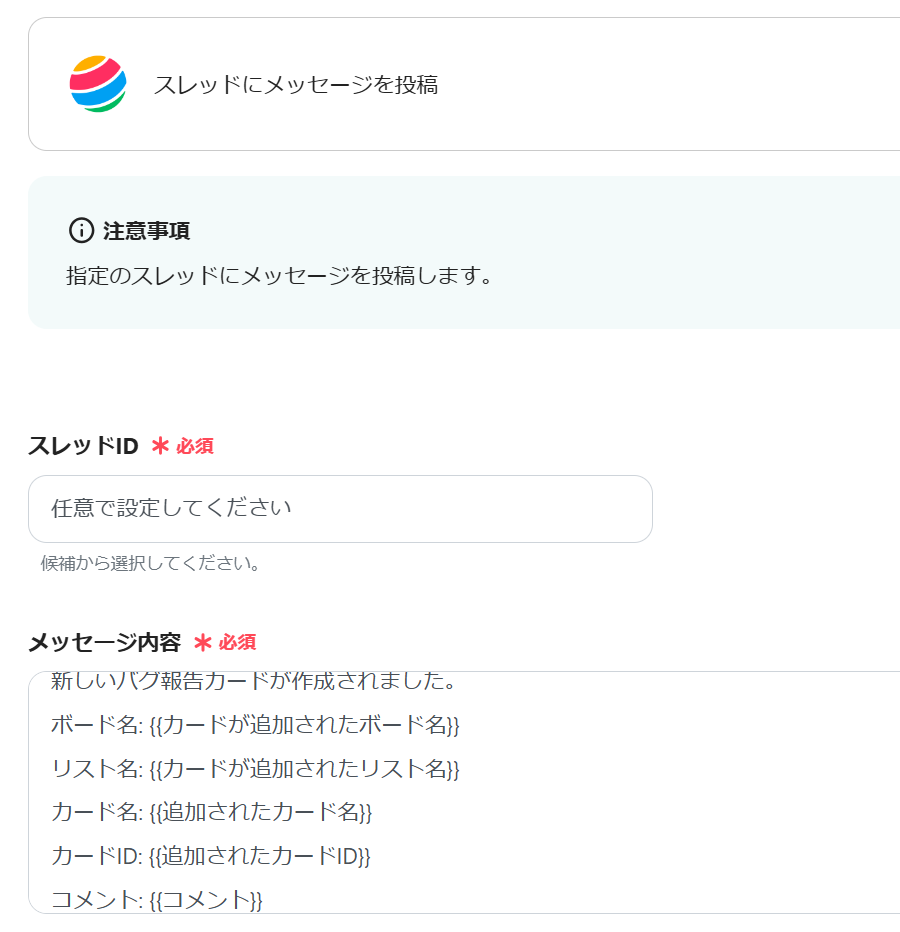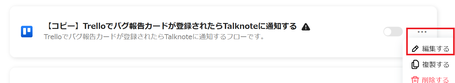 登録が完了したら、「Trelloでバグ報告カードが登録されたらTalknoteに通知する」フローボットを作成してみましょう。