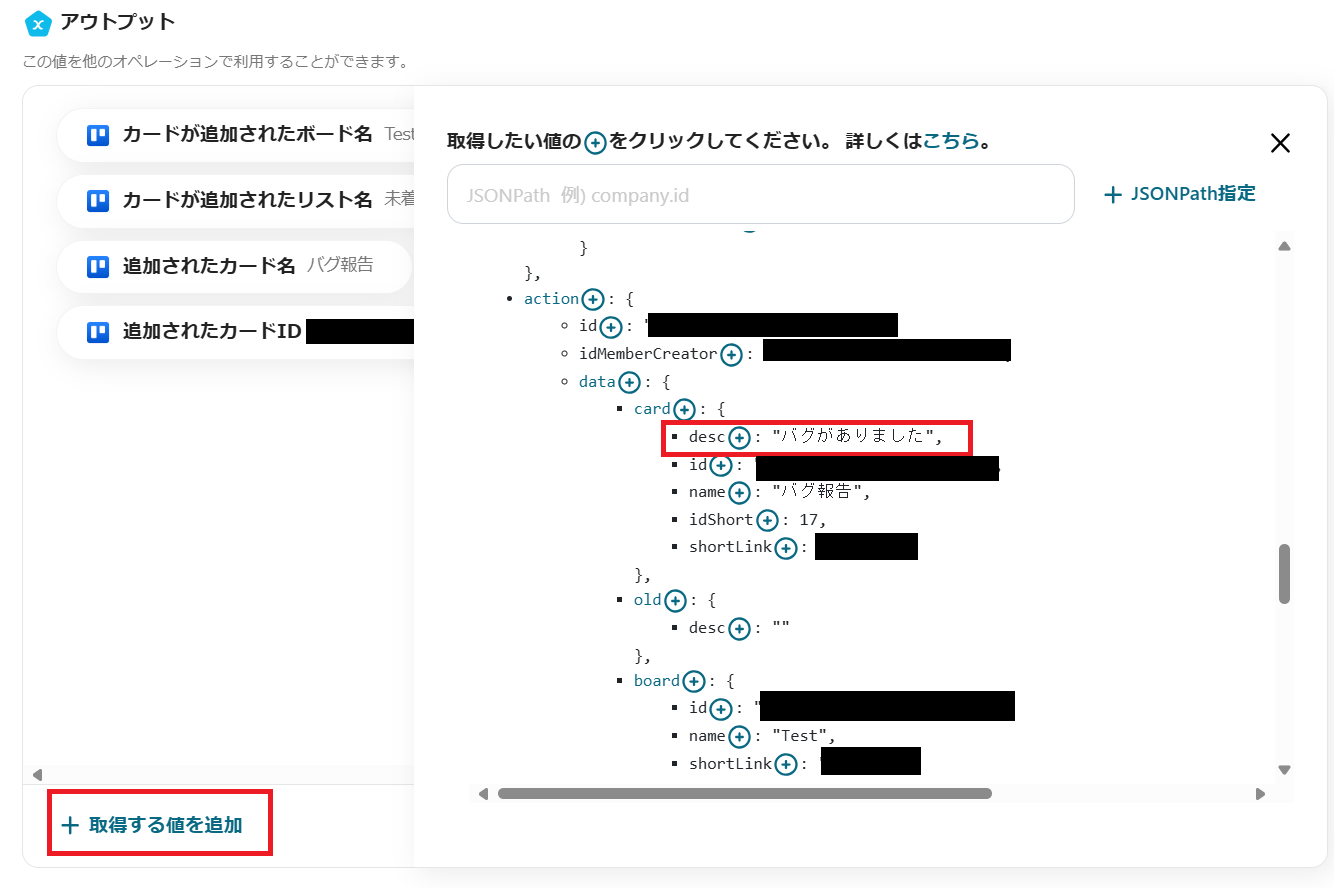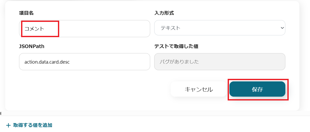 今回はTrelloのカードにコメントを入力しているので、それを取得する設定をします。