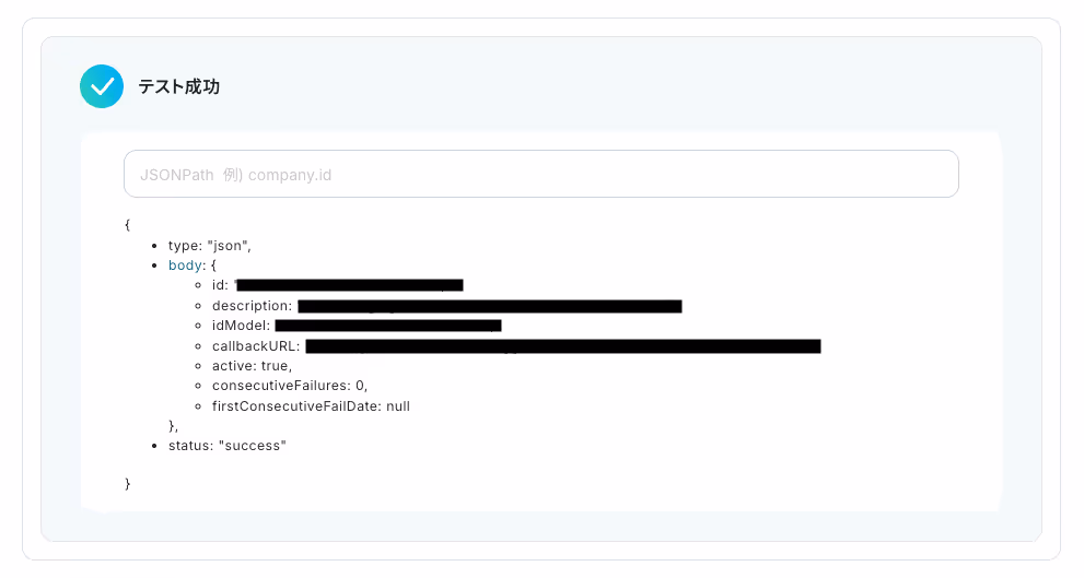 ここでは、Webhook(ウェブフック)の設定が正常に機能するかどうかのテストを行います。