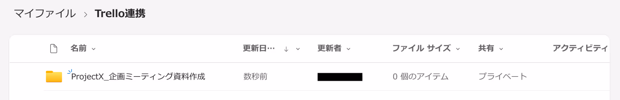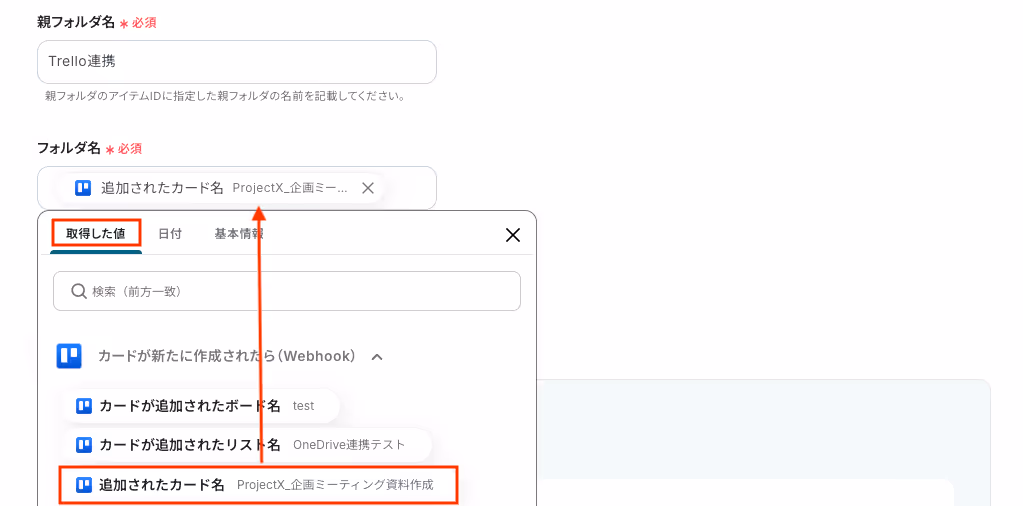 ※取得した値を使用することで、毎回最新のTrelloのカード名がOneDriveのフォルダ名として反映されます。