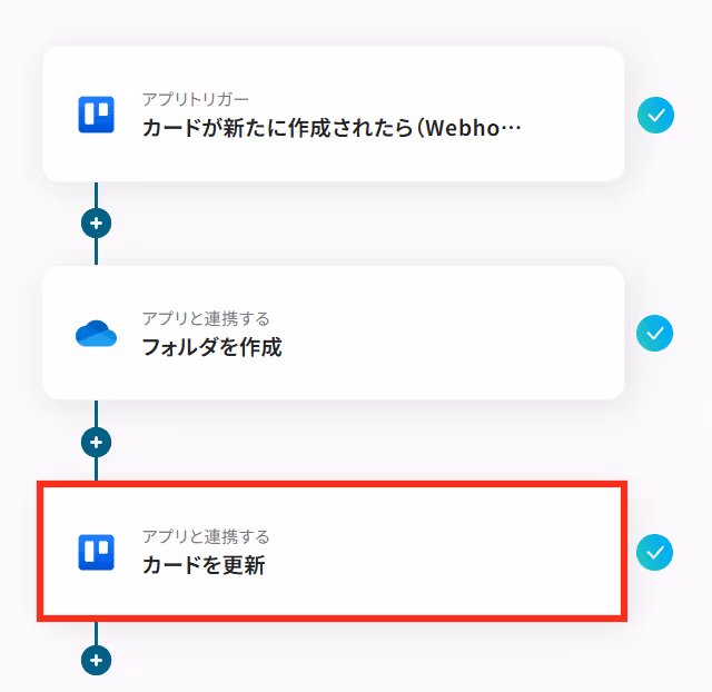 A:以下のように、最後にTrelloのカード更新アクションを設定することで可能です。