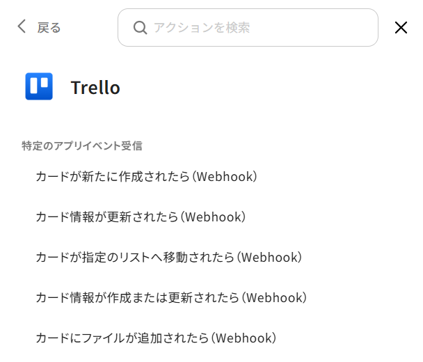 Q:「カードが指定のリストへ移動されたら(Webhook)」以外のトリガーは設定できますか?