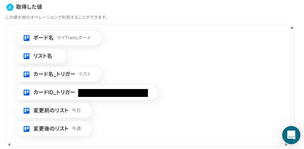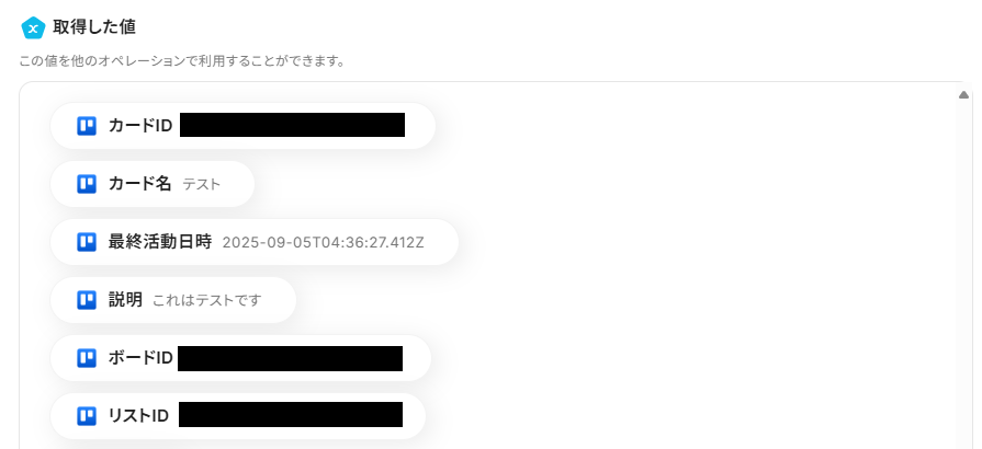 成功すると、取得した値にTrelloの情報が追加されているはずです。この取得した値はこの後のステップで活用します!