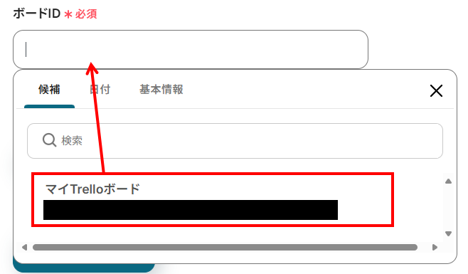 ボードIDは、候補に表示される中から選択しましょう。