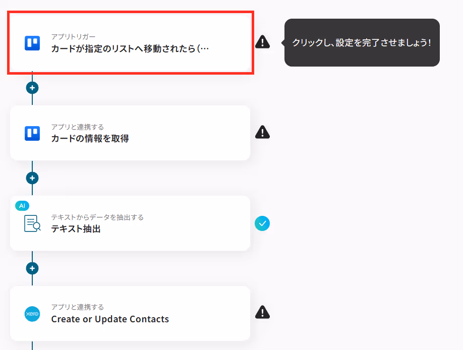 今回は「Trelloでカードが指定のリストに移動されたら、XeroにContactsを作成する」フローを作成していきます!