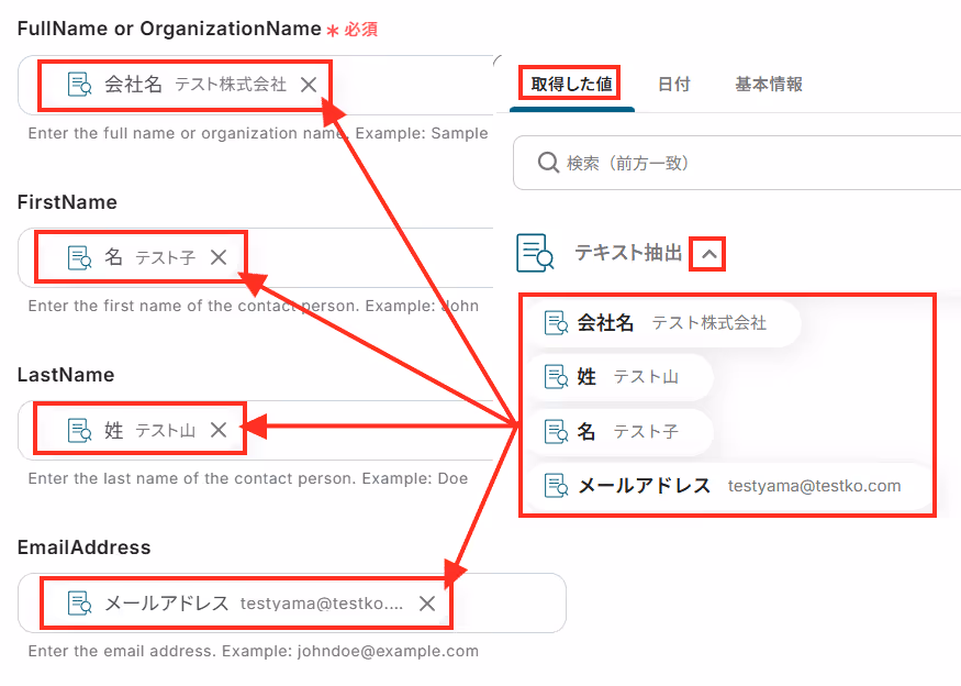 Yoomでは、テストを実行した際に取得できる情報のことを「取得した値」と定義しています。