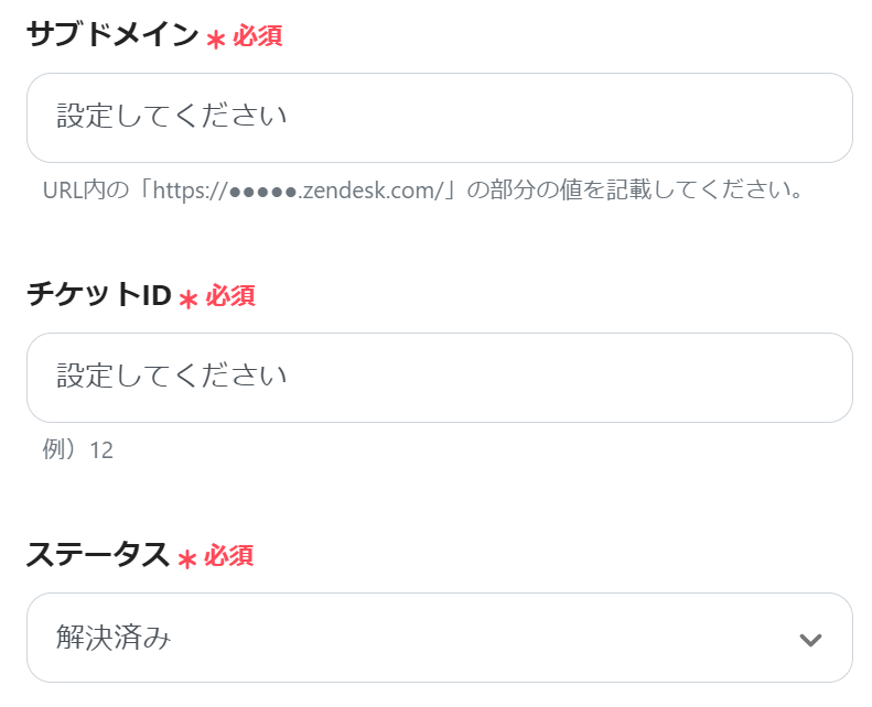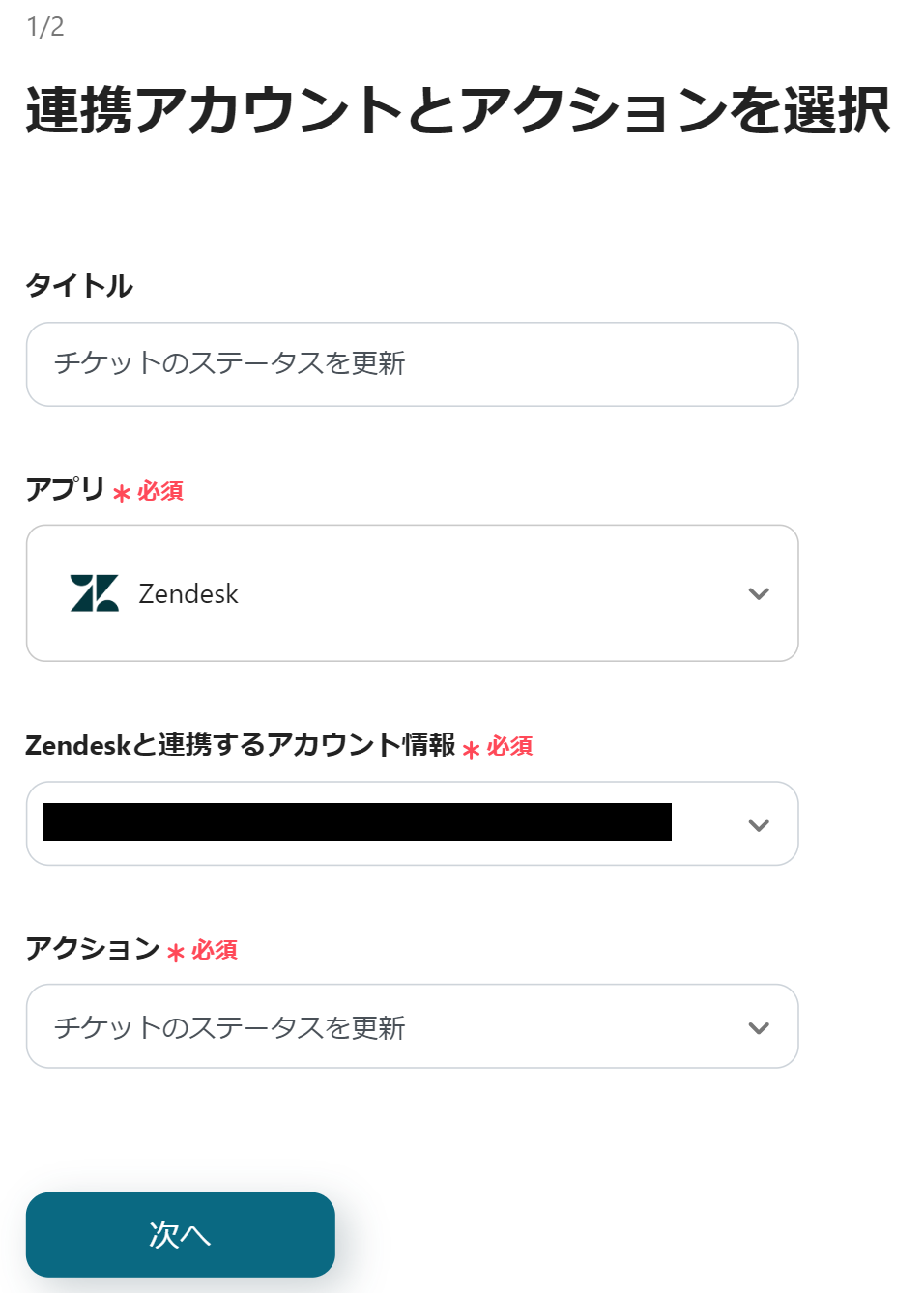 続いてZendeskの設定を行うため、「チケットのステータスを更新」をクリックしましょう。