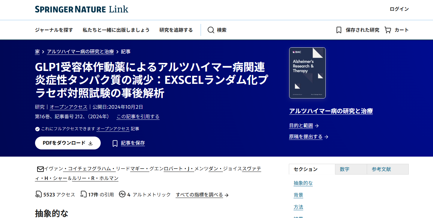トピック: 「GLP-1受容体作動薬の、アルツハイマー型認知症または認知機能低下に対する治療効果」