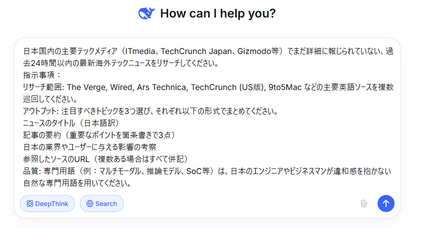 DeepSeekは、複数の英語ソースから最新情報をすぐに収集し、文脈を汲み取った上で「日本市場への影響」まで言語化する能力において、かなり高い精度を発揮しました。