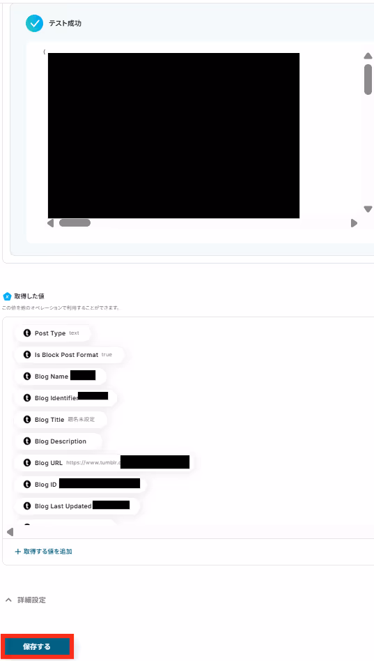 今回は、Tumblrから取得した値のみを使ってフォルダ名を作成しましたが、「【フォルダ作成日】投稿タイトル」など、取得した値と手動入力を組み合わせて設定することもできます。