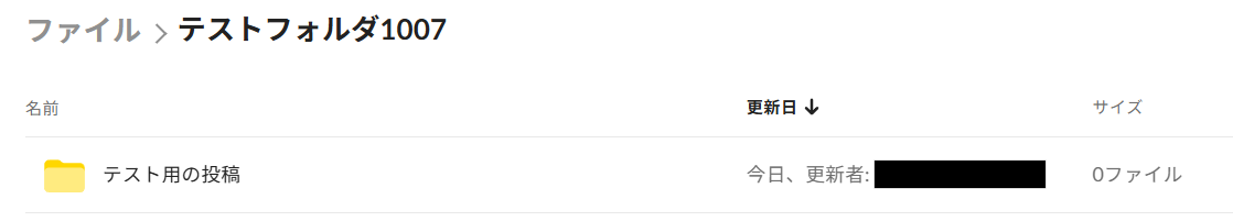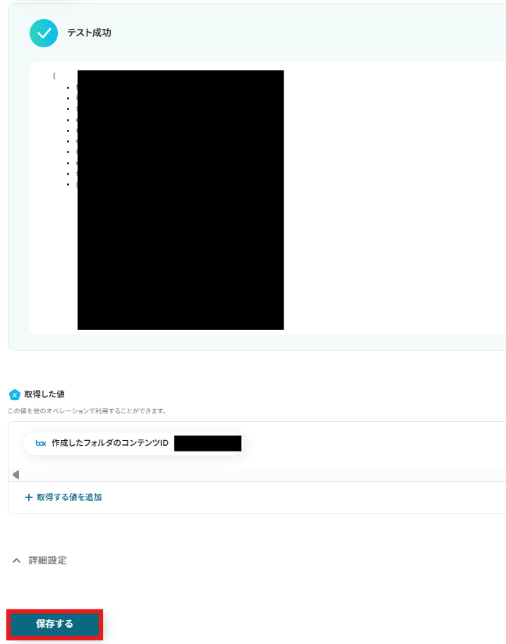 すべて入力できたらテストを実行してみましょう。 テストが成功するとBoxで新しくフォルダが作成されますので確認してみましょう。