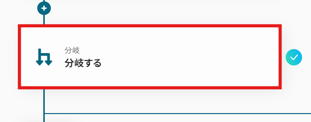 次に、Boxにフォルダを作成したい特定の投稿を検知するために、分岐の設定を行います。 赤枠の「分岐する」をクリックしましょう。