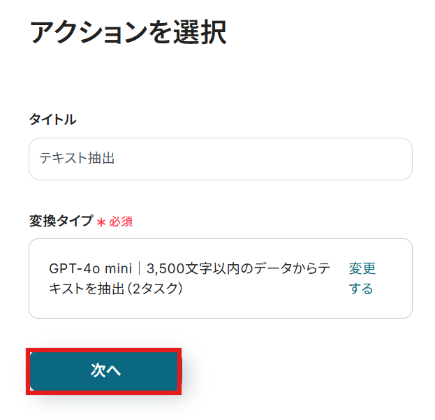 ステップ5:取得したテキストからデータを抽出するアクション設定