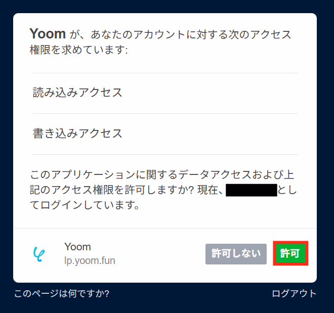 Yoomとの連携が求められるため、許可ボタンをクリックしましょう。