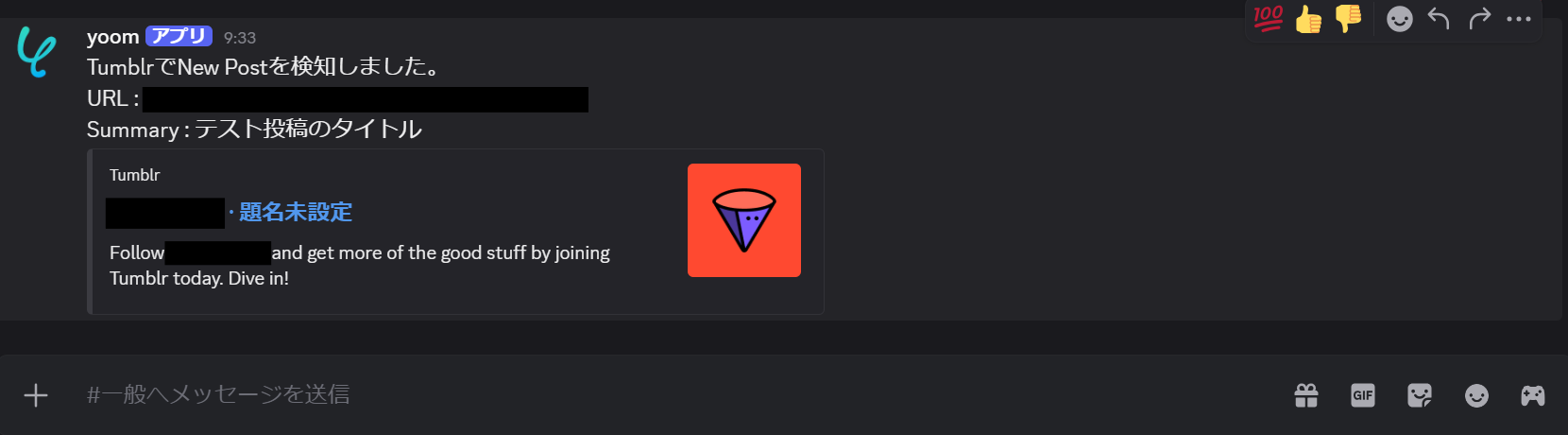 TumblrでNew Postを検知したら、Slackのチャンネルにメッセージを送る