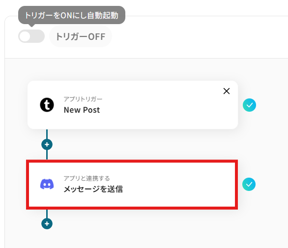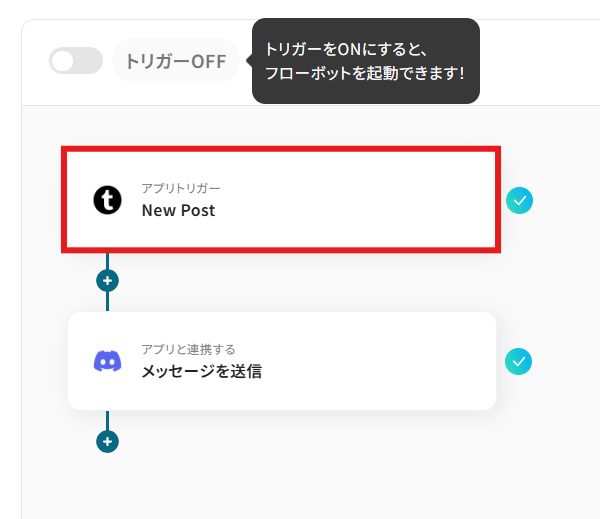 今回は「TumblrでNew Postを検知したら、Discordでメッセージを送信する」 フローを作成していきます! 作成の流れは大きく分けて以下です。