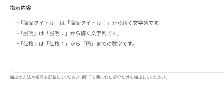 抽出したい項目を設定できたら、各項目をどのようなルールで抽出するのか、AIに分かりやすいような指示を入力します。