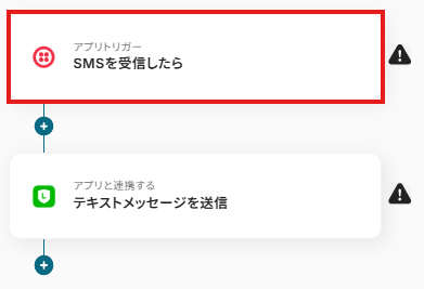 1.先ほどの画面で「OK」をクリックして、表示された画面のアプリトリガー「SMSを受信したら」をクリックしてください。