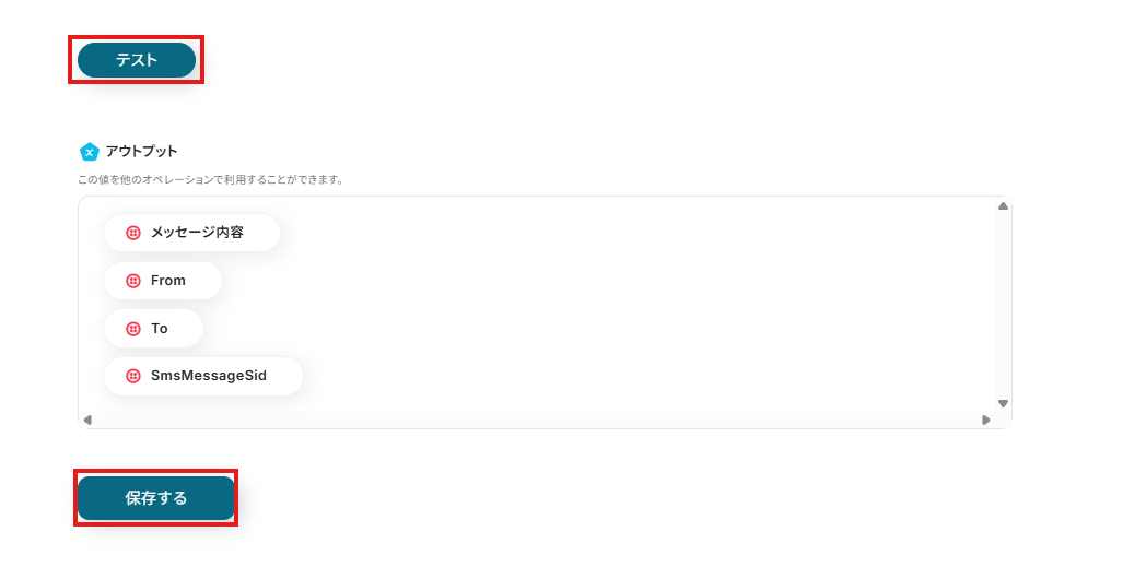 ※表示されているアウトプットは「この値を他のオペレーションで利用することができます。」と表記があるように、次の設定でも活用できます。