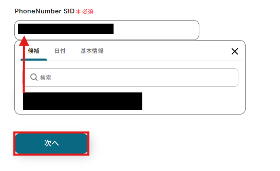3.「PhoneNumber SID」は、入力欄をクリックして表示される候補から選択してください。