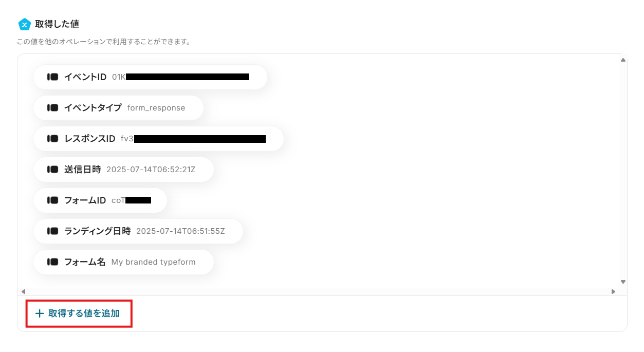 ・Typeformのアウトプットの追加方法は下記を参考にしてください。