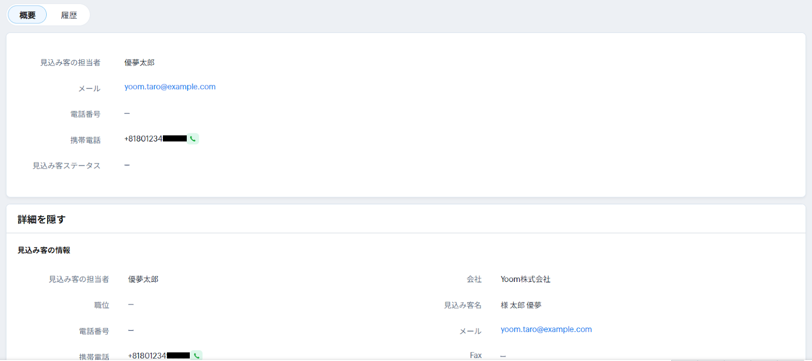 - テストに成功すると、Zoho CRMに新しい見込み客が作成されます。