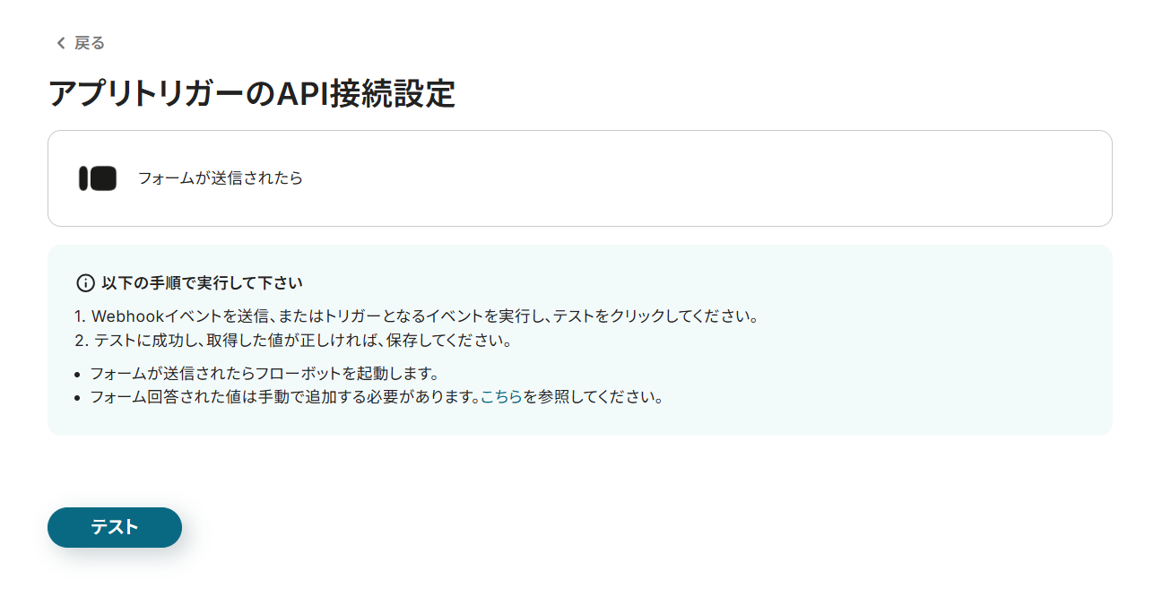 - 設定を終えたら、「テスト」をクリック。