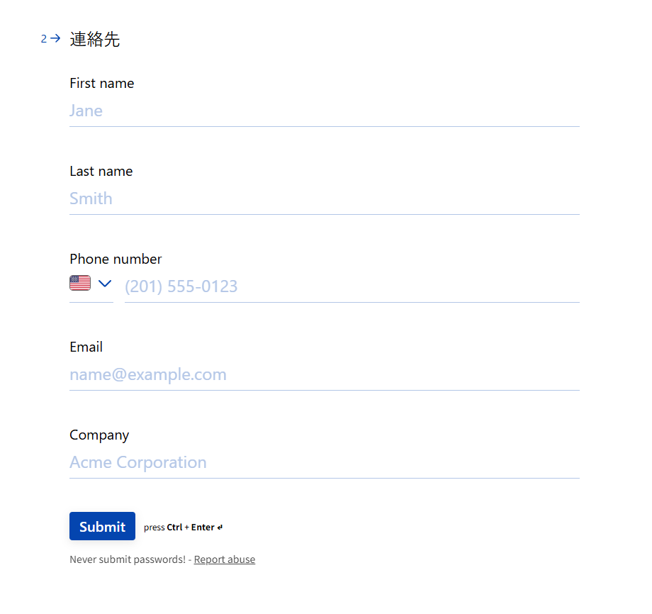 ここでは例として、下図の問い合わせフォームを使用します。