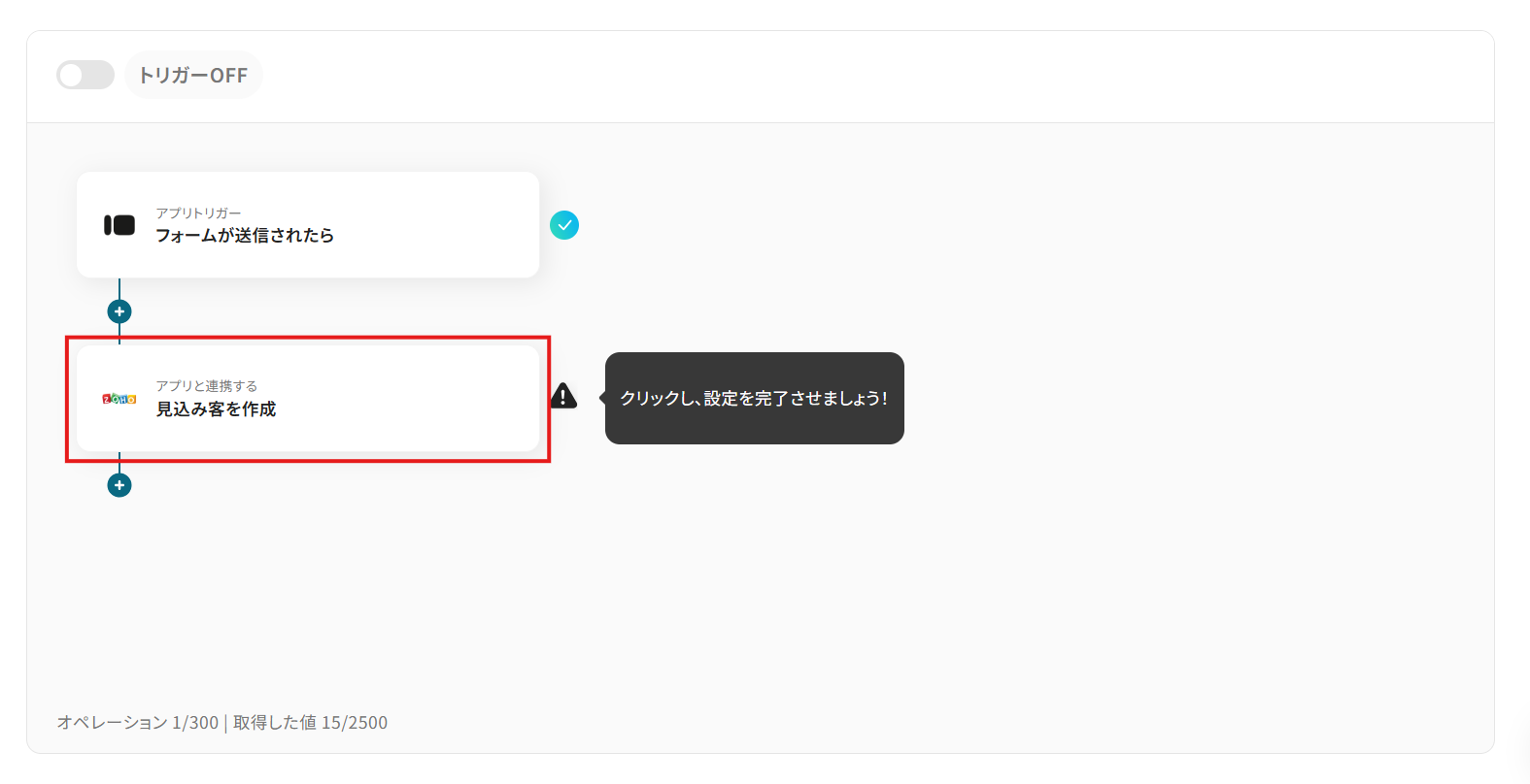 - トリガーとなるフォームと作成する見込み客の設定
