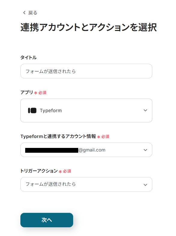トリガーとなるフォームをTypeformでご用意ください。