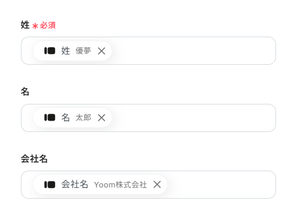 - 先頭の「姓」と末尾の「Zohoドメイン」は必須項目となります。