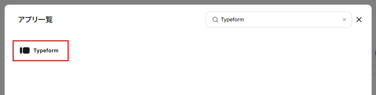 - アプリ一覧画面が表示されたら、右上の検索バーでアプリ名(ここではTypeform)を検索して選択。