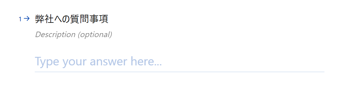 また、次の画面の操作を行う前にTypeformにてフォームを作成しましょう。 今回は下記のようなフォームを作成して進めています。