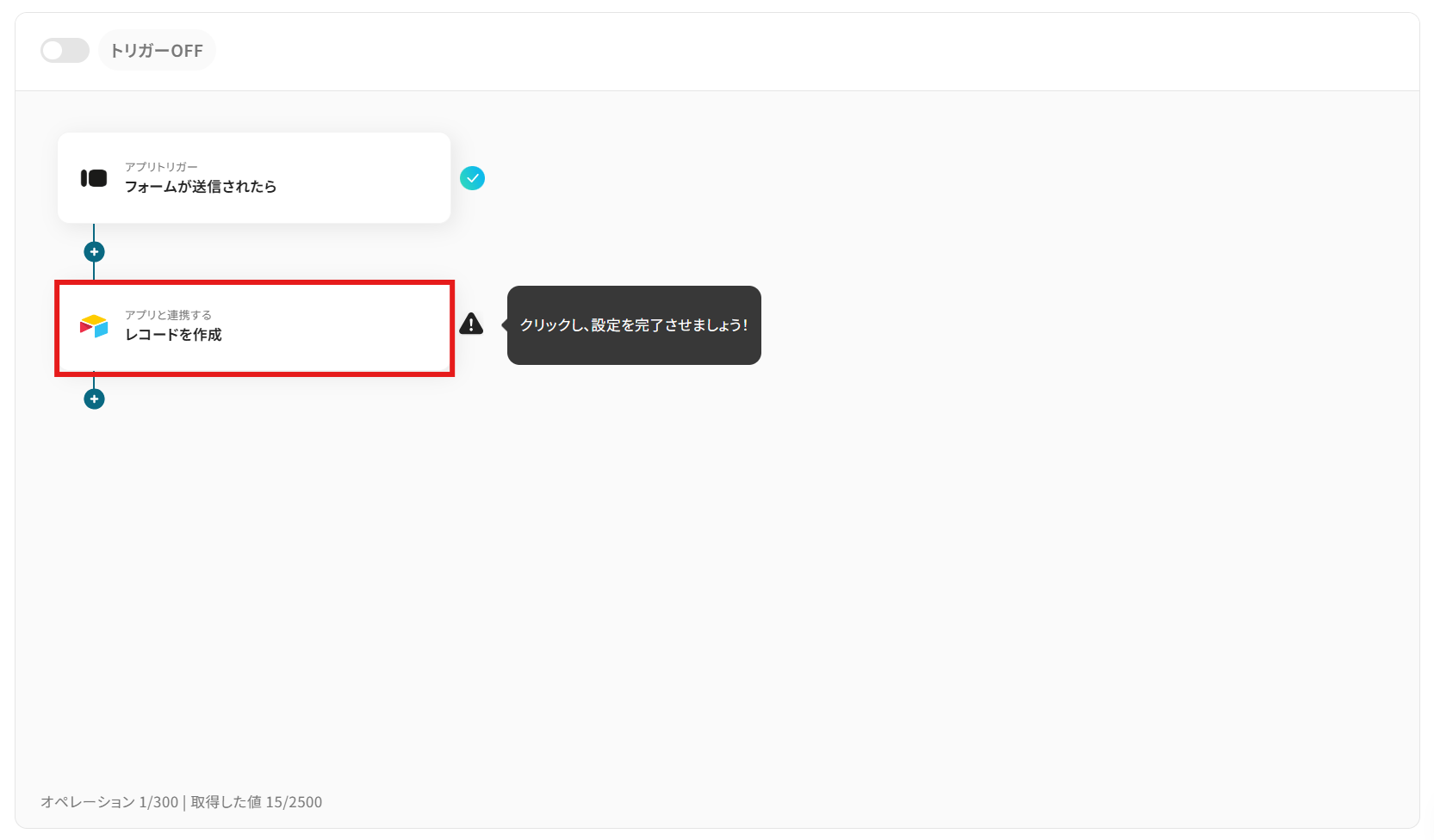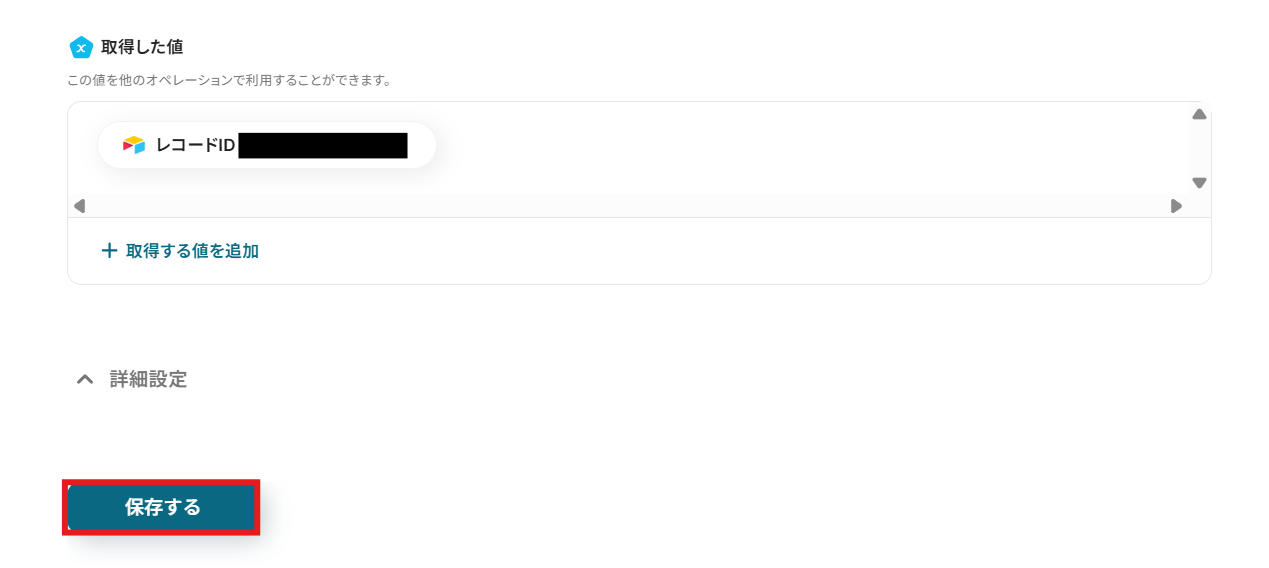 他にも「レコードを削除」や「レコードの一覧を取得する」等の処理を実施できますので、必要に応じてフローを作成してください。