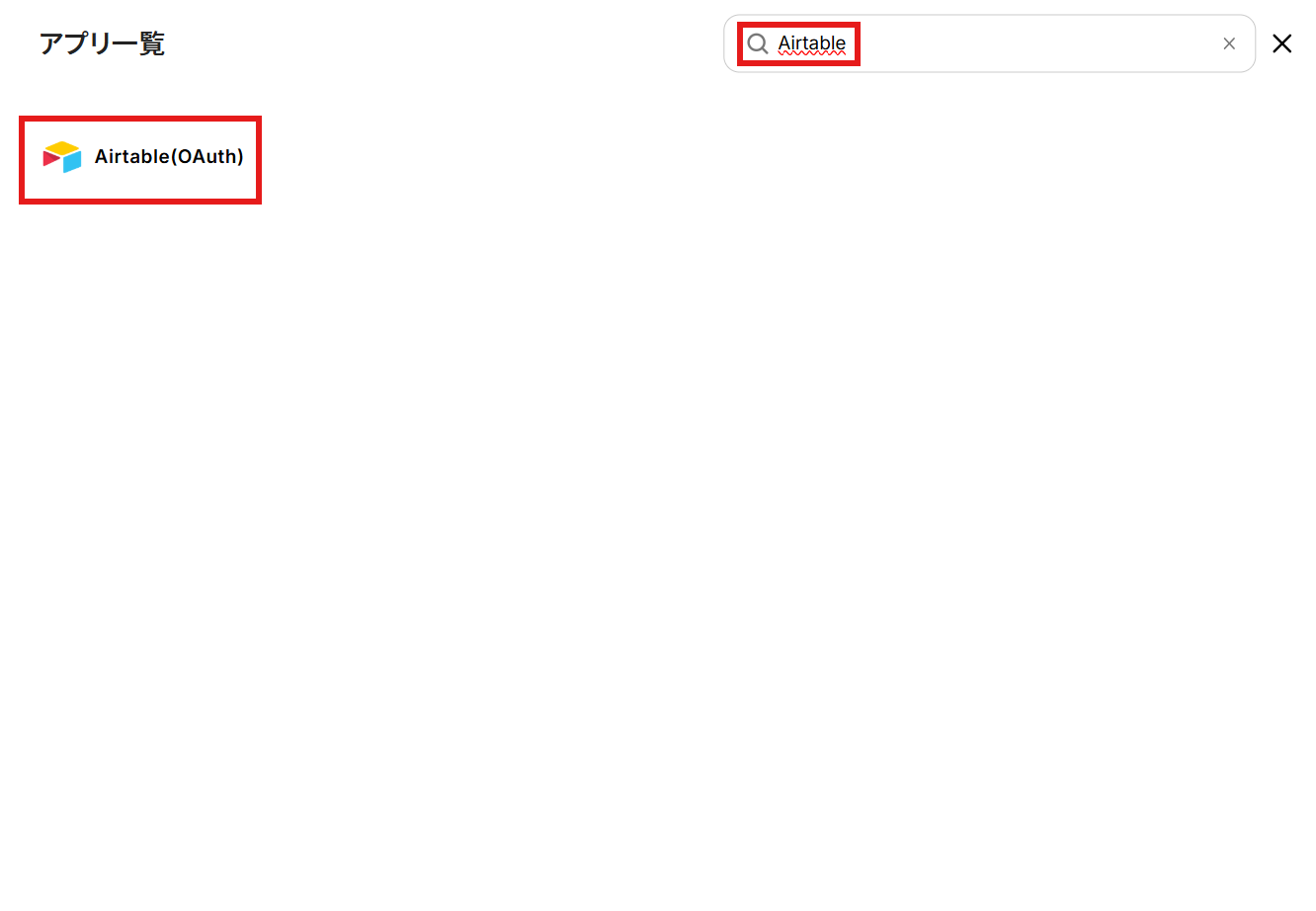 検索ボックスにAirtableと入力し、Airtableのアイコンをクリックします。