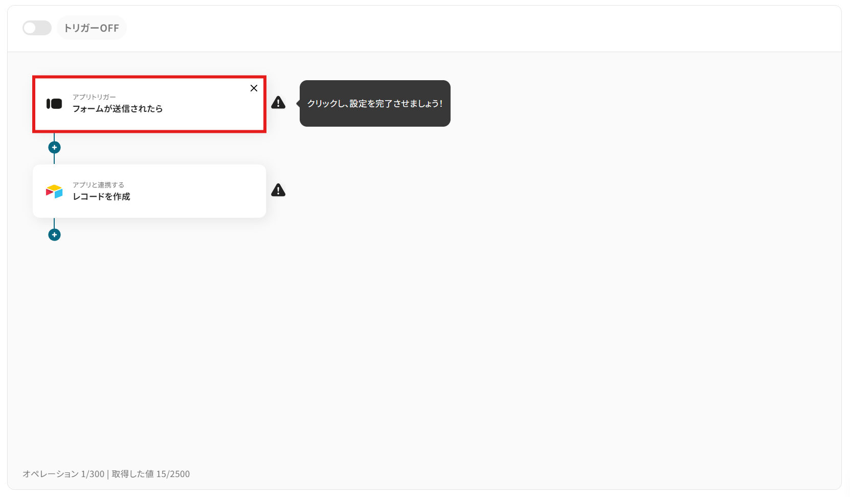 - 【Salesforce】はチームプラン・サクセスプランでのみご利用いただけるアプリとなっております。フリープラン・ミニプランの場合は設定しているフローボットのオペレーションやデータコネクトはエラーとなりますので、ご注意ください。
