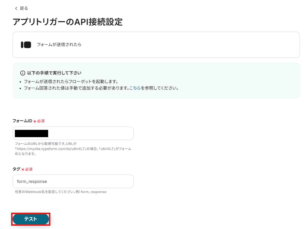 - フォームID:作成したTypeformのURLより取得してください。