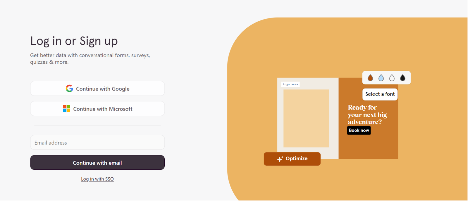 お手持ちのTypeformのアカウントでログインを行ってください。