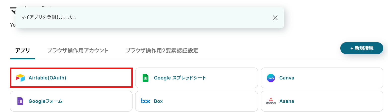Airtableのマイアプリ登録は完了となります。