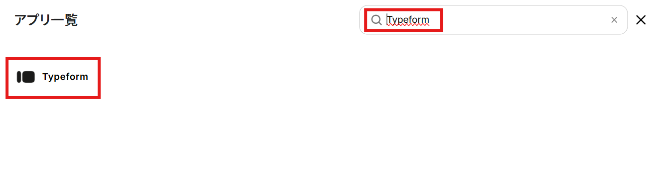 検索ボックスにTypeformと入力し、Typeformのアイコンをクリックします。