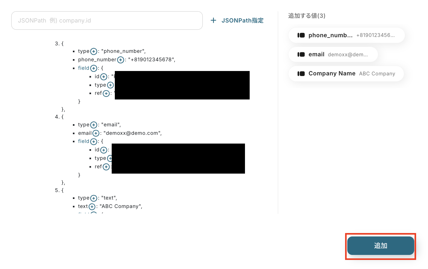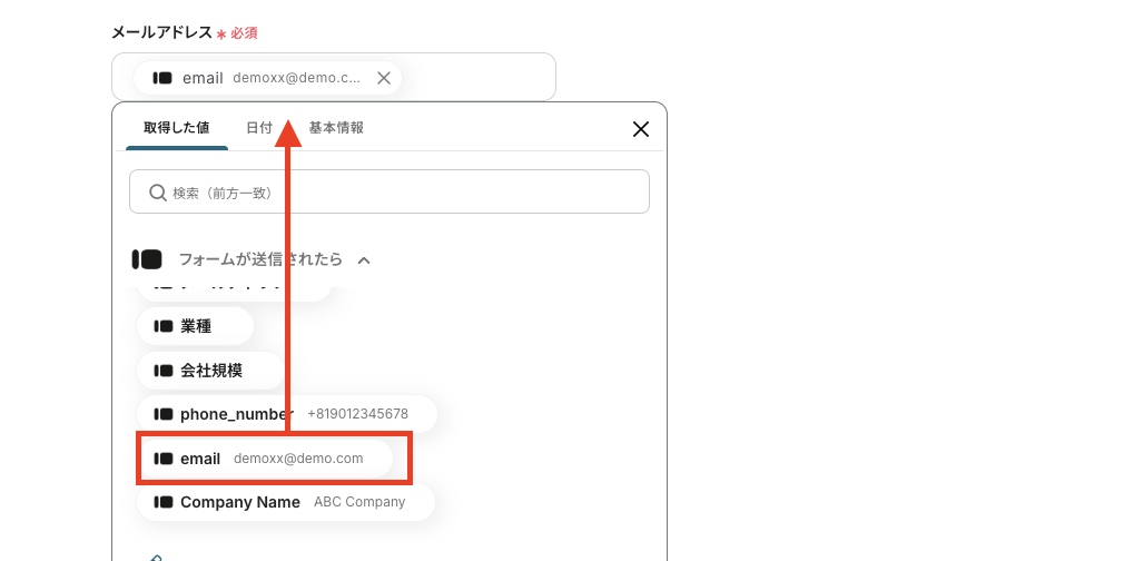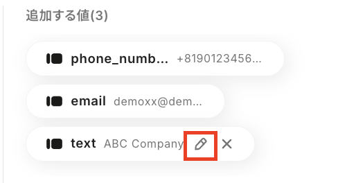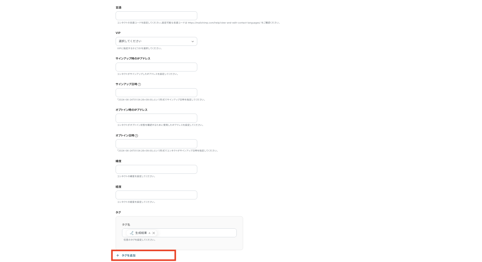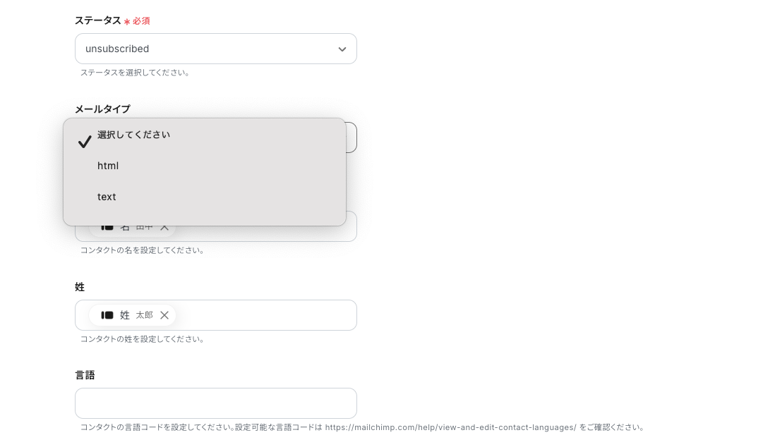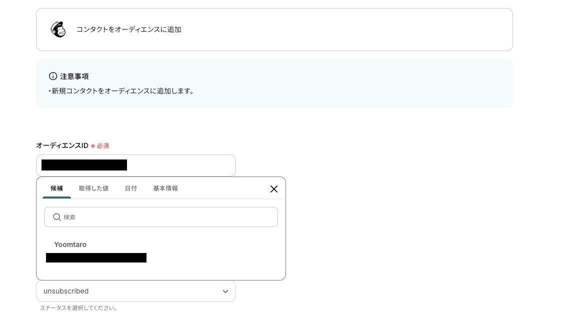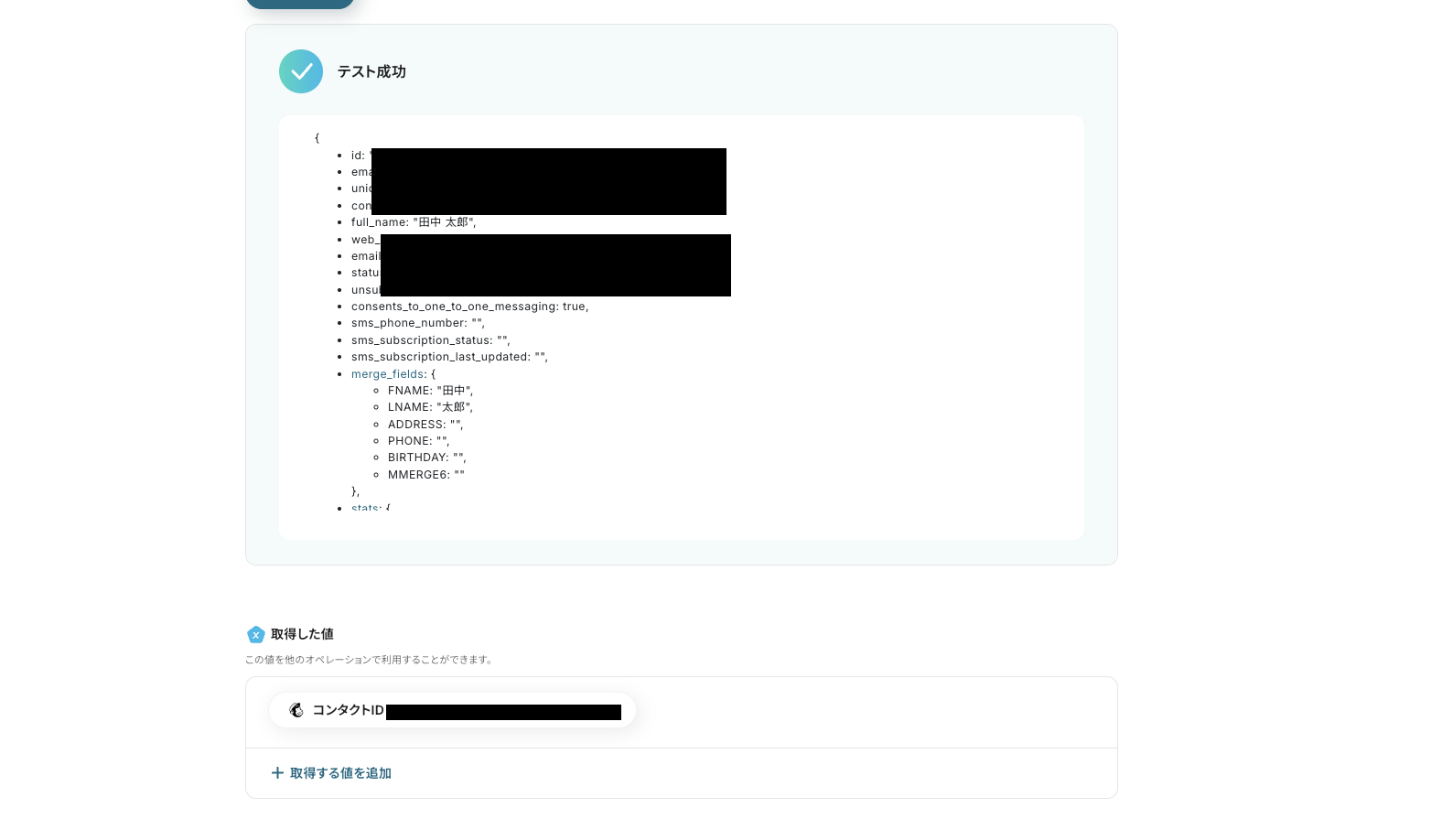 なお、取得した値の中にMailchimpに連携したいデータが反映されていない場合は、手動で追加する必要があります。