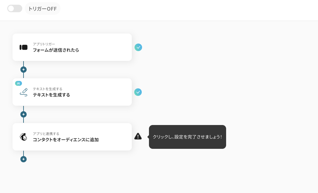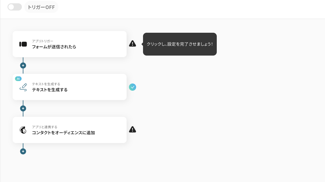 今回は、「Typeformで顧客情報が送信されたら、AIでタグ付けしてMailchimpにコンタクトを追加する」フローを作成していきます!