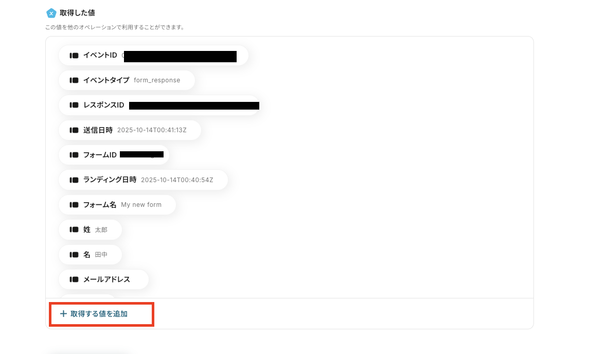 このステップで取得した値はこの後の設定で活用するデータとなります。