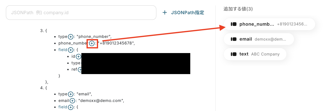 取得した値を追加したい場合、こちらのページに記載されている操作を参考に設定を行ってください。