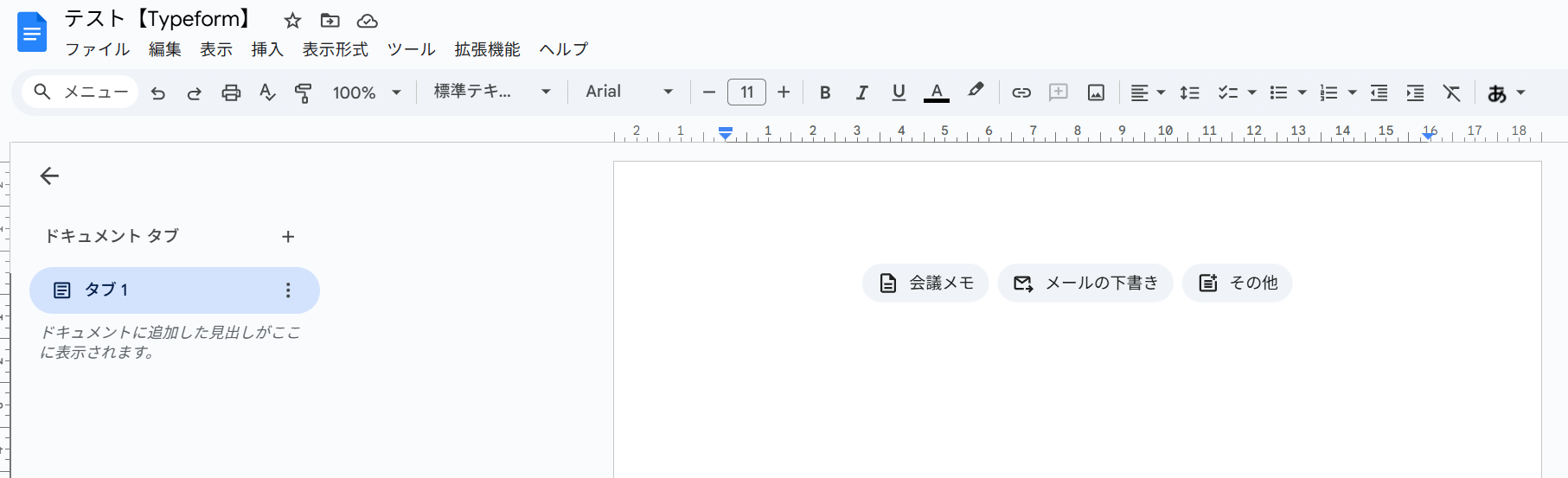 Googleドキュメントでも同様に、事前にテスト用のドキュメントを作成しています。