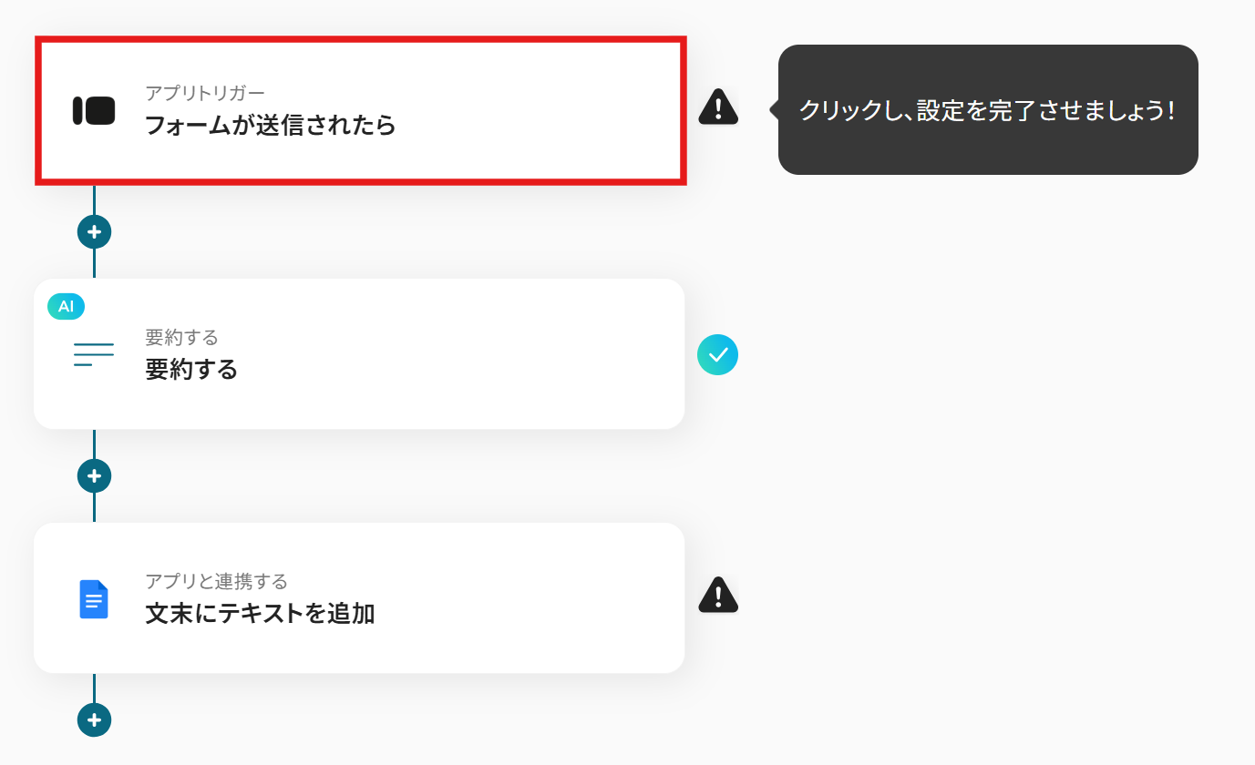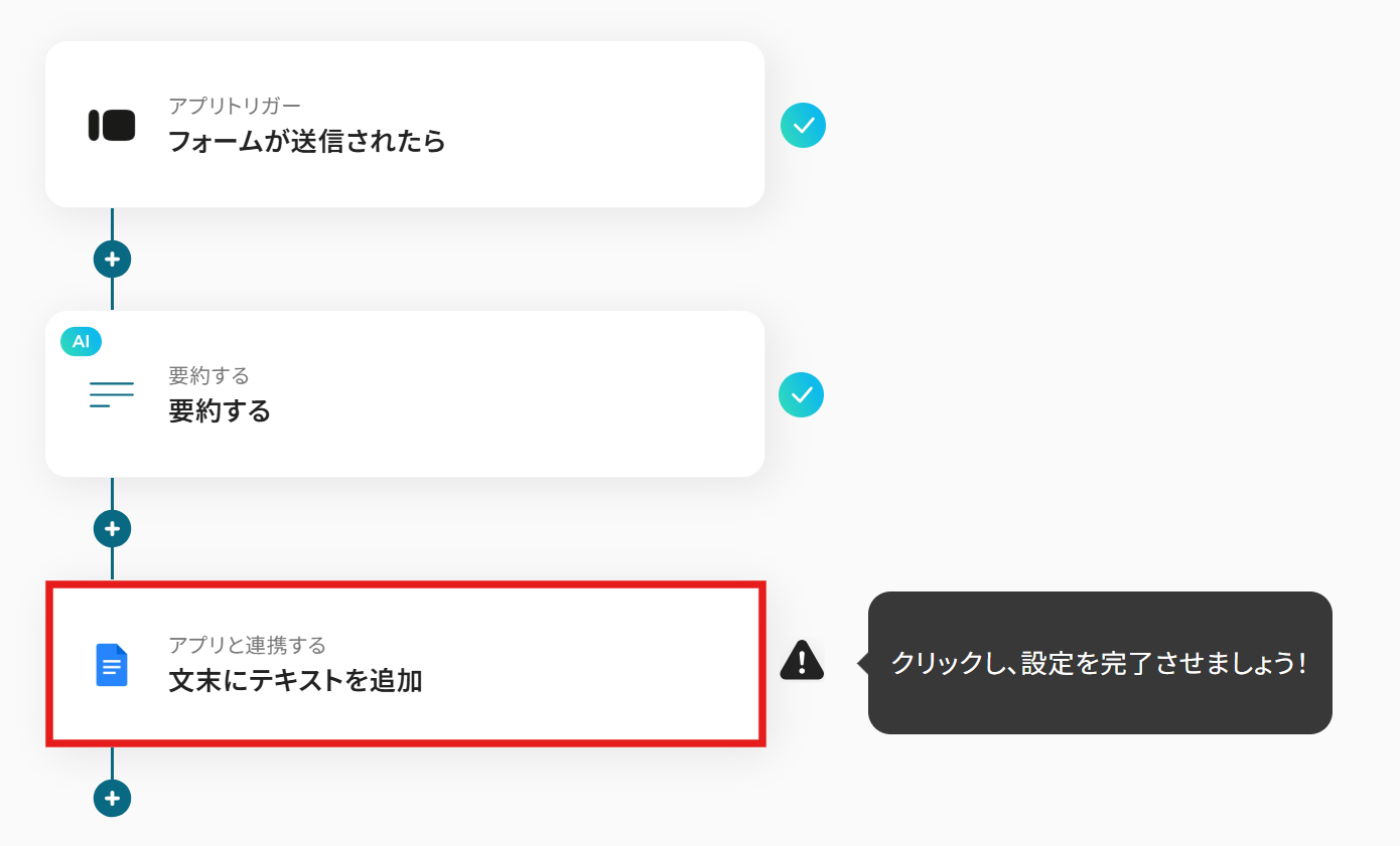 Typeformでフォームが送信されたら、AIで要約してGoogleドキュメントにテキストを追加する