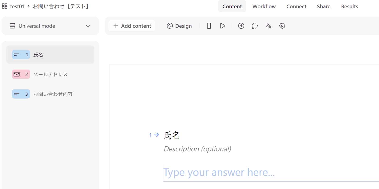 ここまで設定ができたら、今回の連携テストで使用するため、Typeformの画面でテスト用の回答を送信しましょう。